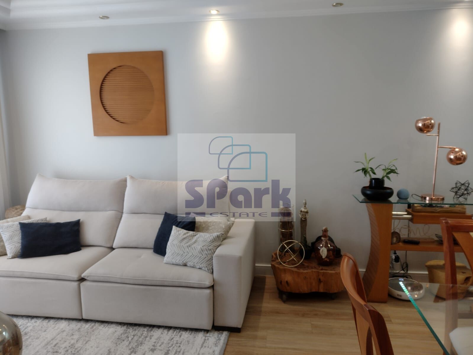 Sala com dois ambientes ,cozinha e área de serviço.